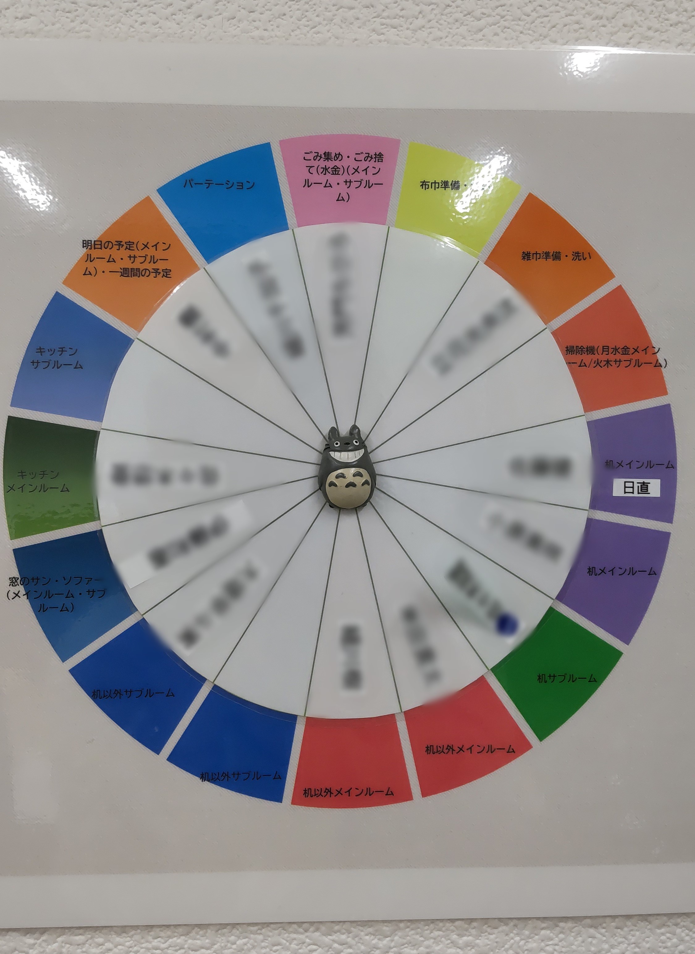 雑巾・布巾畳みと麦茶作りは、朝の時間に行いますが、掃除当番表を回す作業は、終礼後に行う仕事です。日直の日は、日報を記入した後に回し、帰る前に回し忘れていないか、再度確認しています。